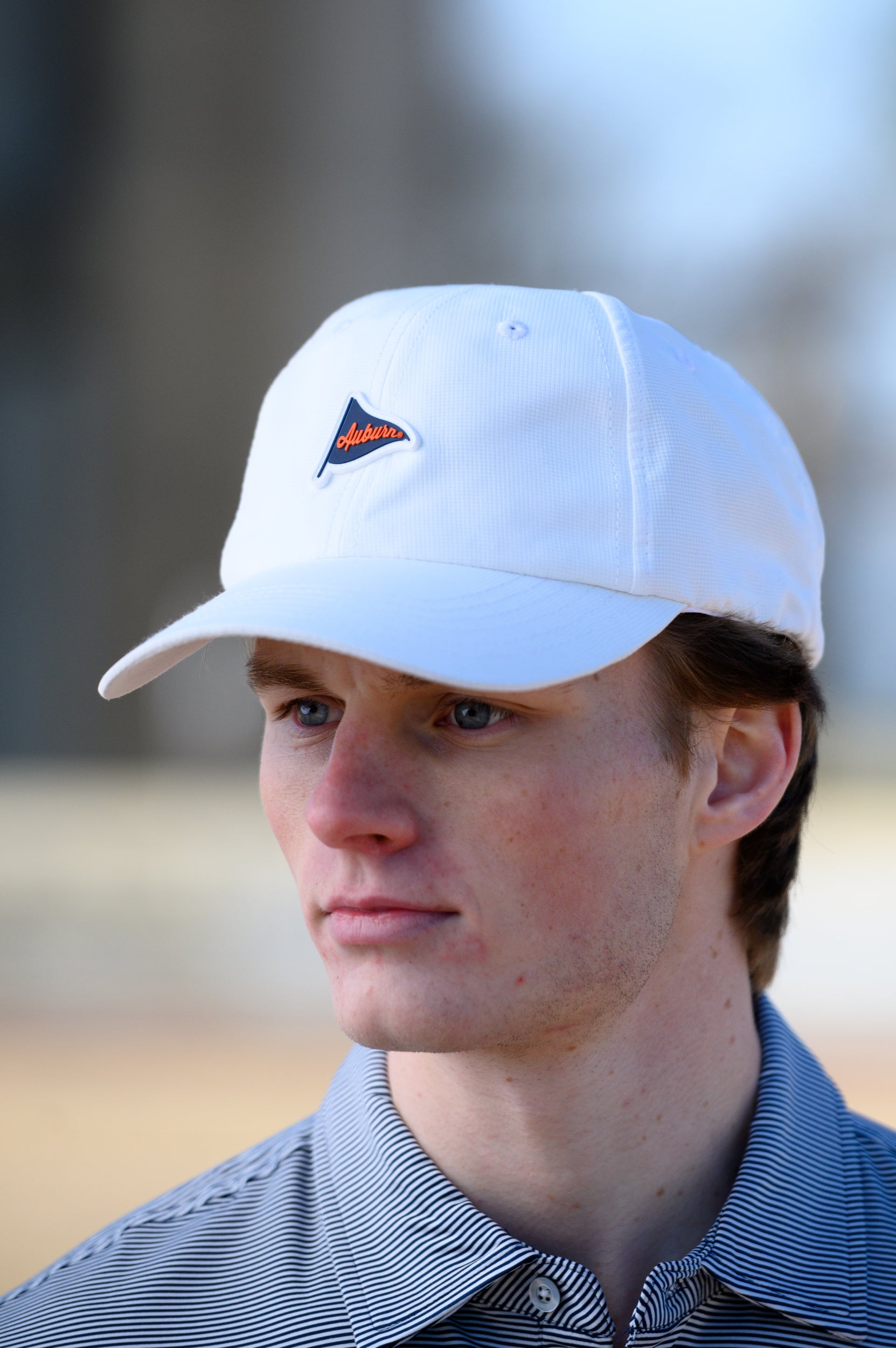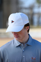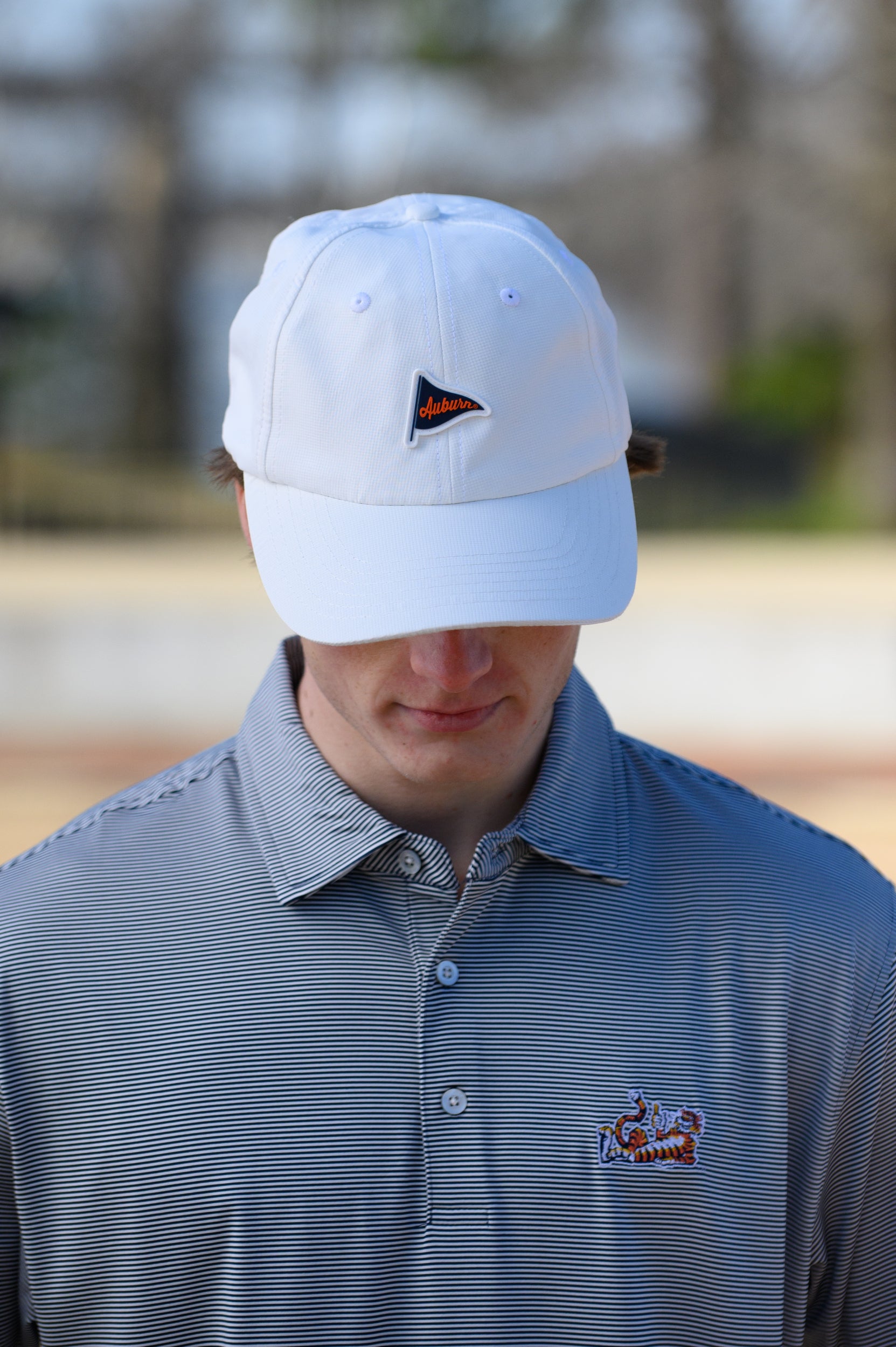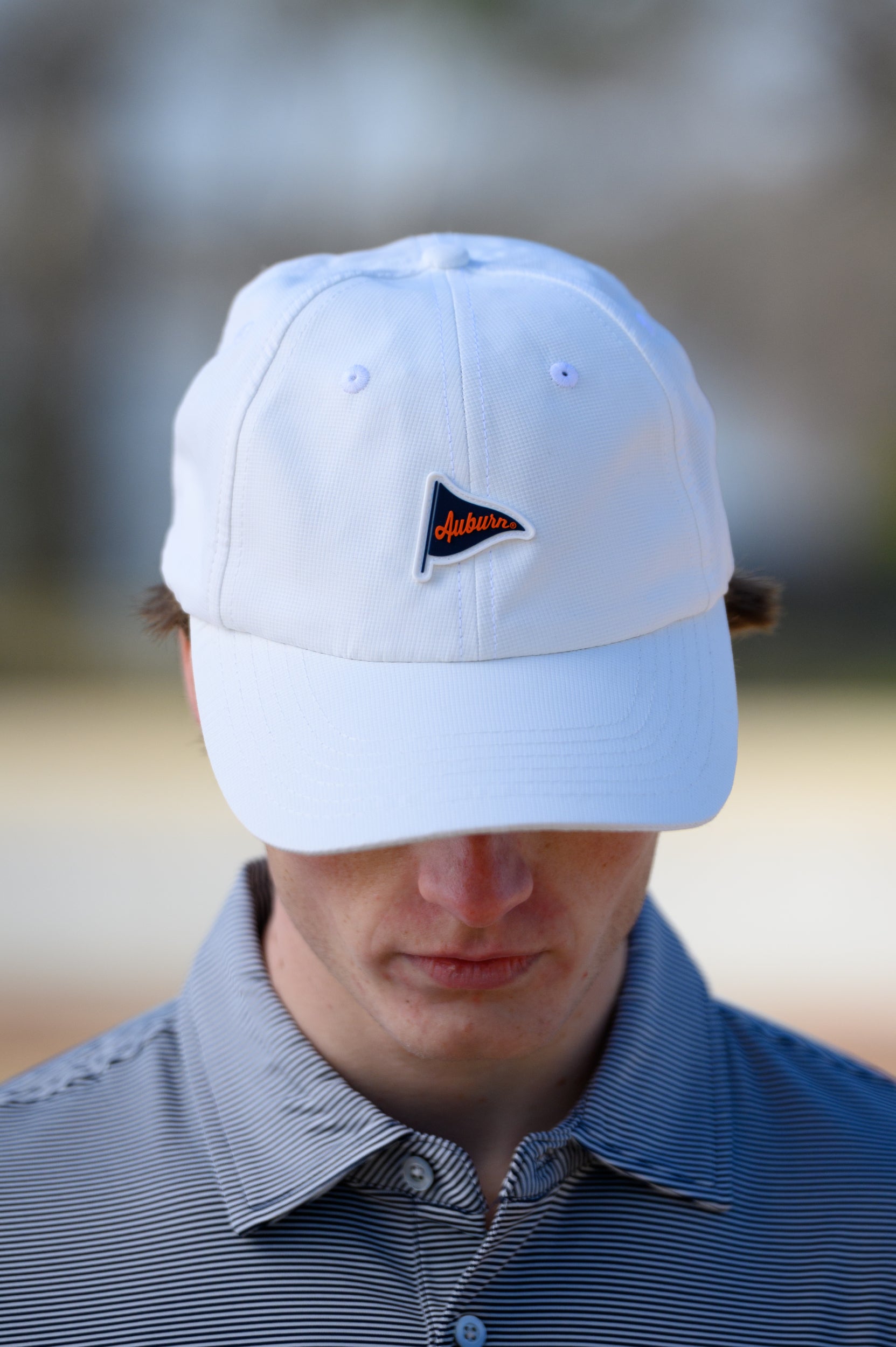Your golf game has never looked so good! Made of moisture-wicking performance fabric our very own Auburn Performance Flag Hat will keep you cool (and looking good) for all 18-holes. It's all in the details. We've decorated it with an orange and navy pennant flag stitched on as a rubber patch.