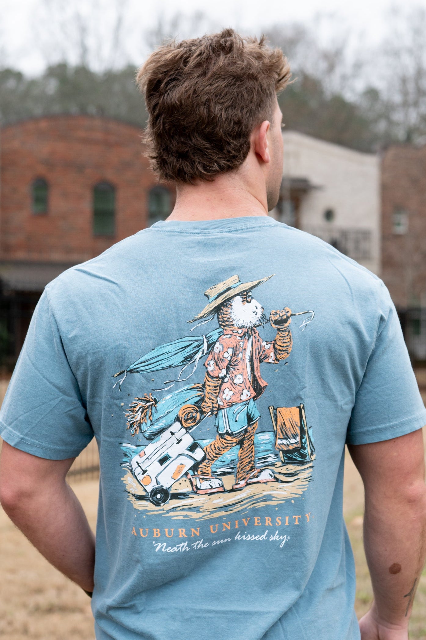 Our Aubie Beach t-shirt features Aubie the Tiger with a cooler of beach gear. When Aubie isn't cheering on the Tigers, Auburn University's biggest fan is headed to the Alabama Gulf Coast..