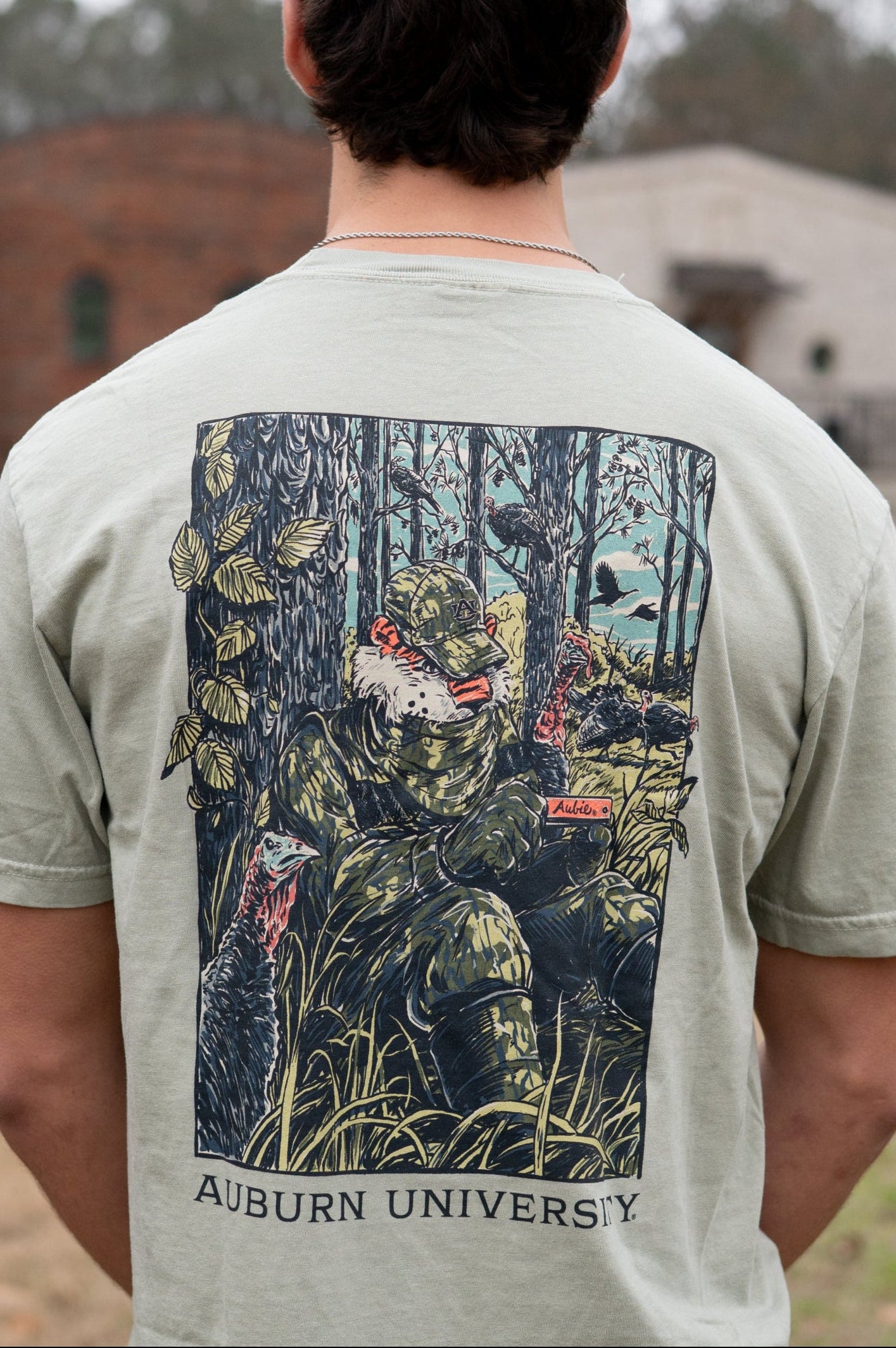 Our Aubie Turkey Call t-shirt has vivid hand-drawn details of a scene of the Auburn mascot on a turkey hunt in the Alabama woods. This fan-favorite Comfort Colors T-Shirt is the perfect Auburn Tigers shirt for turkey hunters!