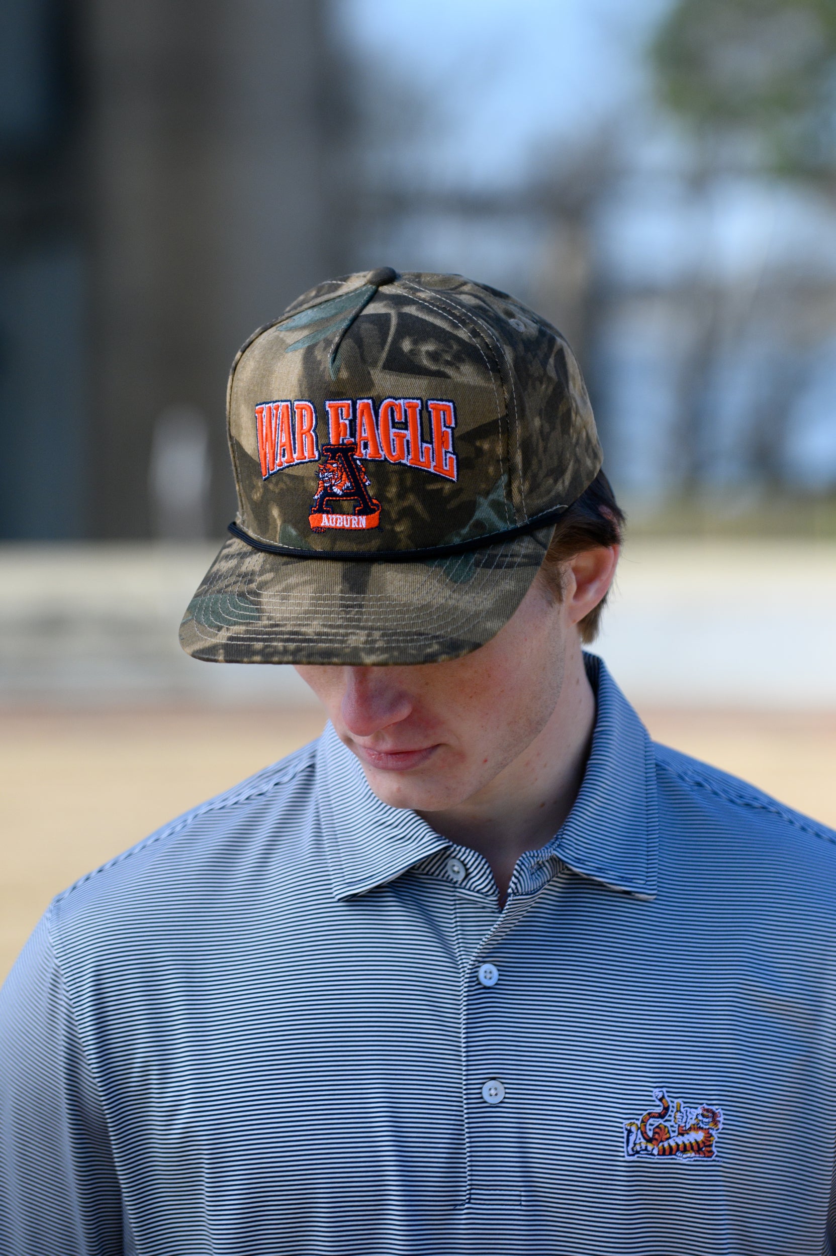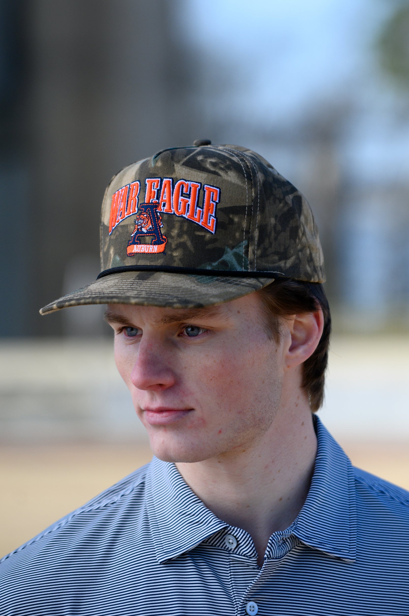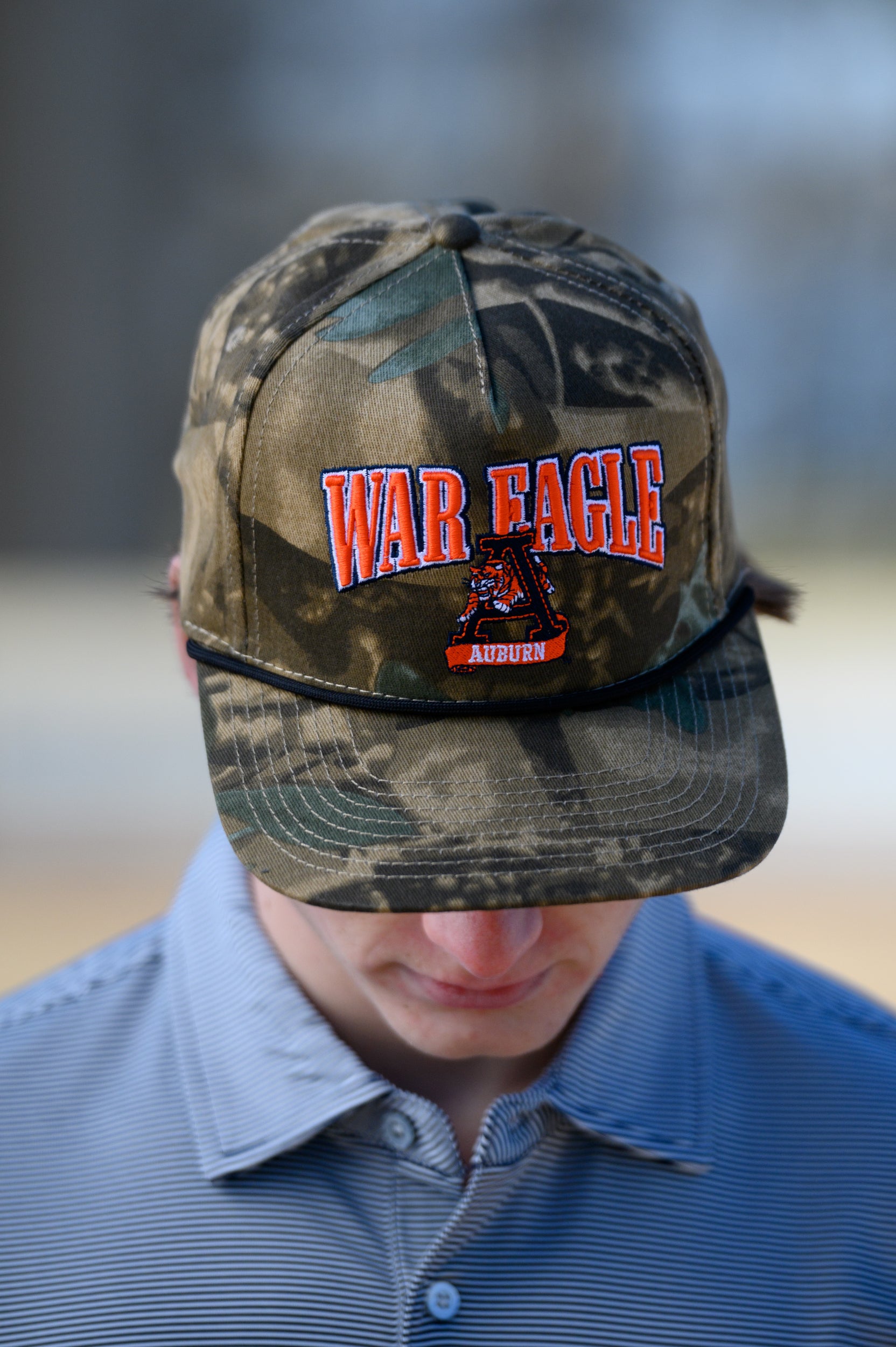 Elevate your game day look with the War Eagle Retro Camo Hat, a must-have for every Auburn fan. This vintage camo trucker combines timeless style with modern comfort. Its rugged camo design pairs perfectly with your favorite game day outfit or a casual everyday look, making it versatile and stylish. Show your Tiger pride with a hat that’s as bold as your team spirit.