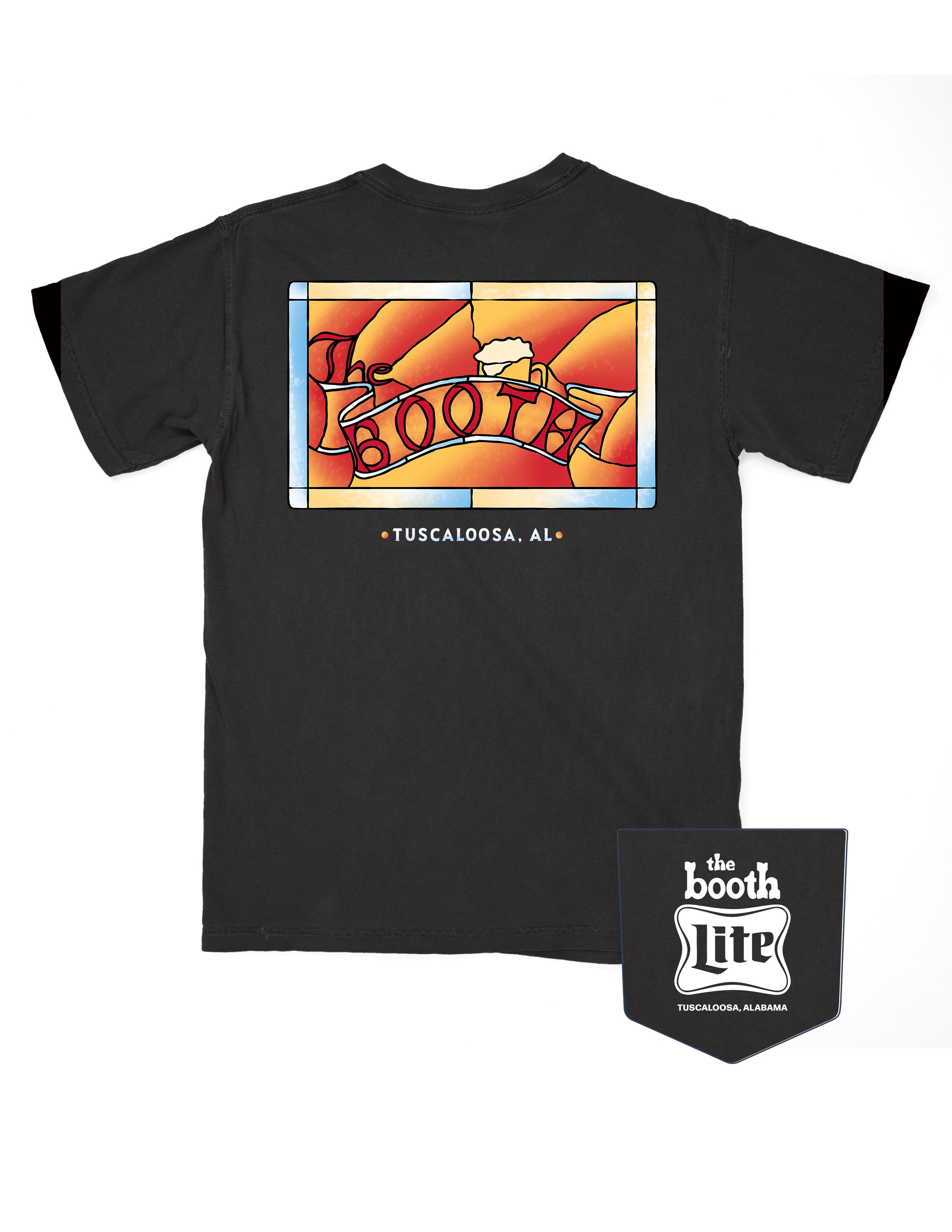 We've partnered with The Booth to bring you this exclusive t-shirt inspired by their iconic stained glass window. This comfort colors t-shirt is the perfect gift for all Booth rats!