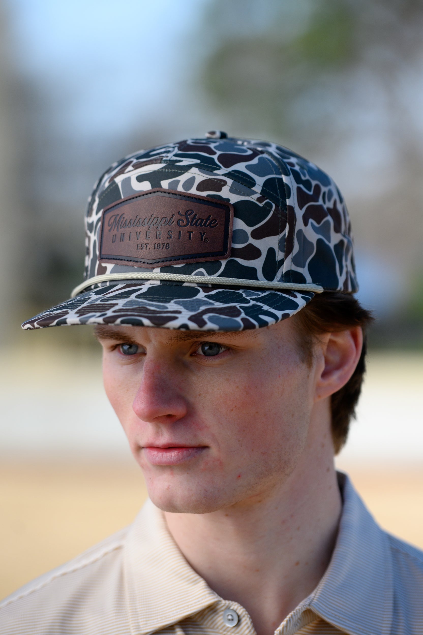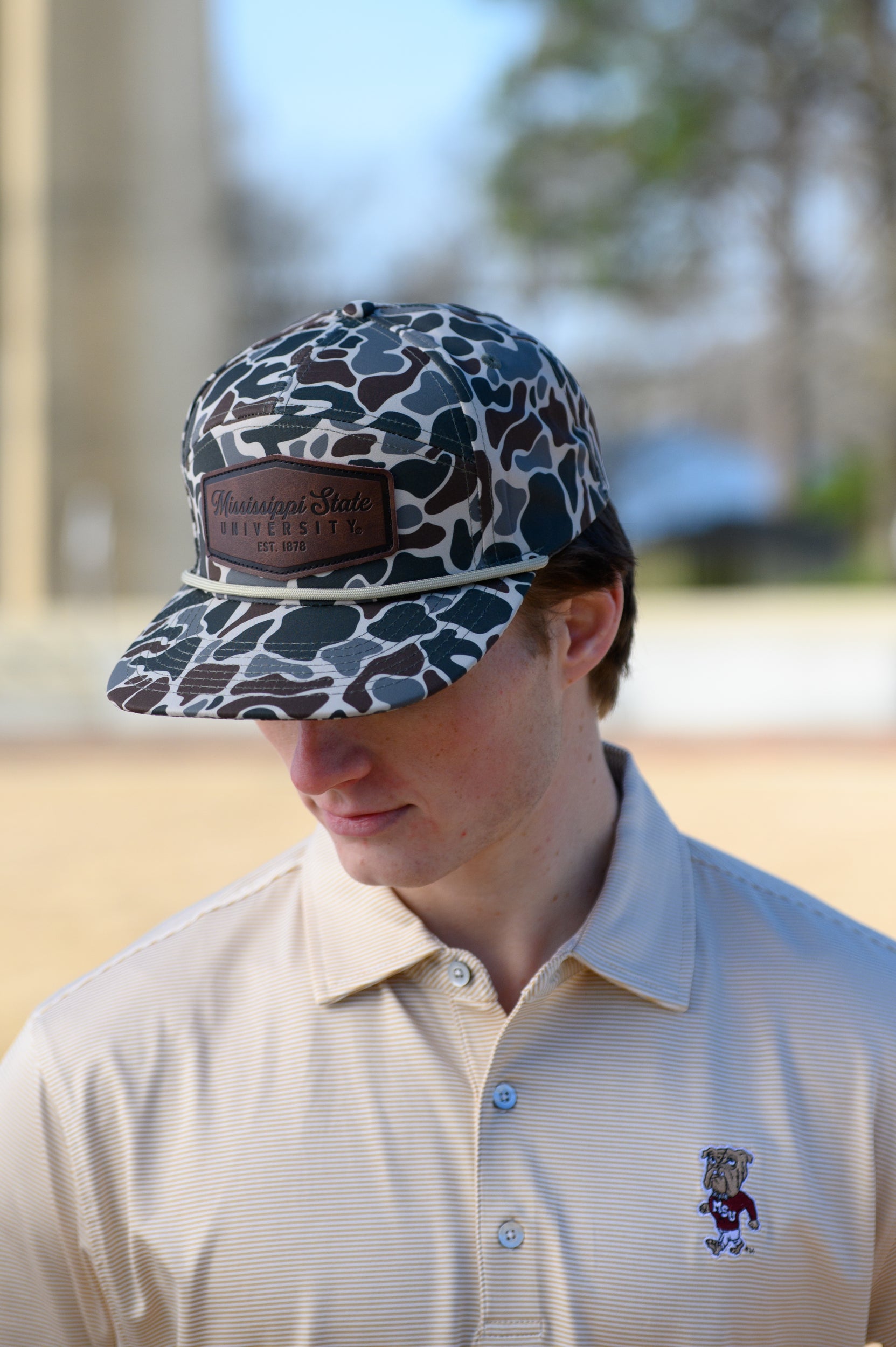 Introducing our MSU Camo Patch Hat. Unlike anything else on the market we created a structured hat with performance fabric, duck camo pattern and a fit you will fall in-love with. A high-quality embossed leather patch and rope on the bill complete the look. Give it a try and you might never take it off!