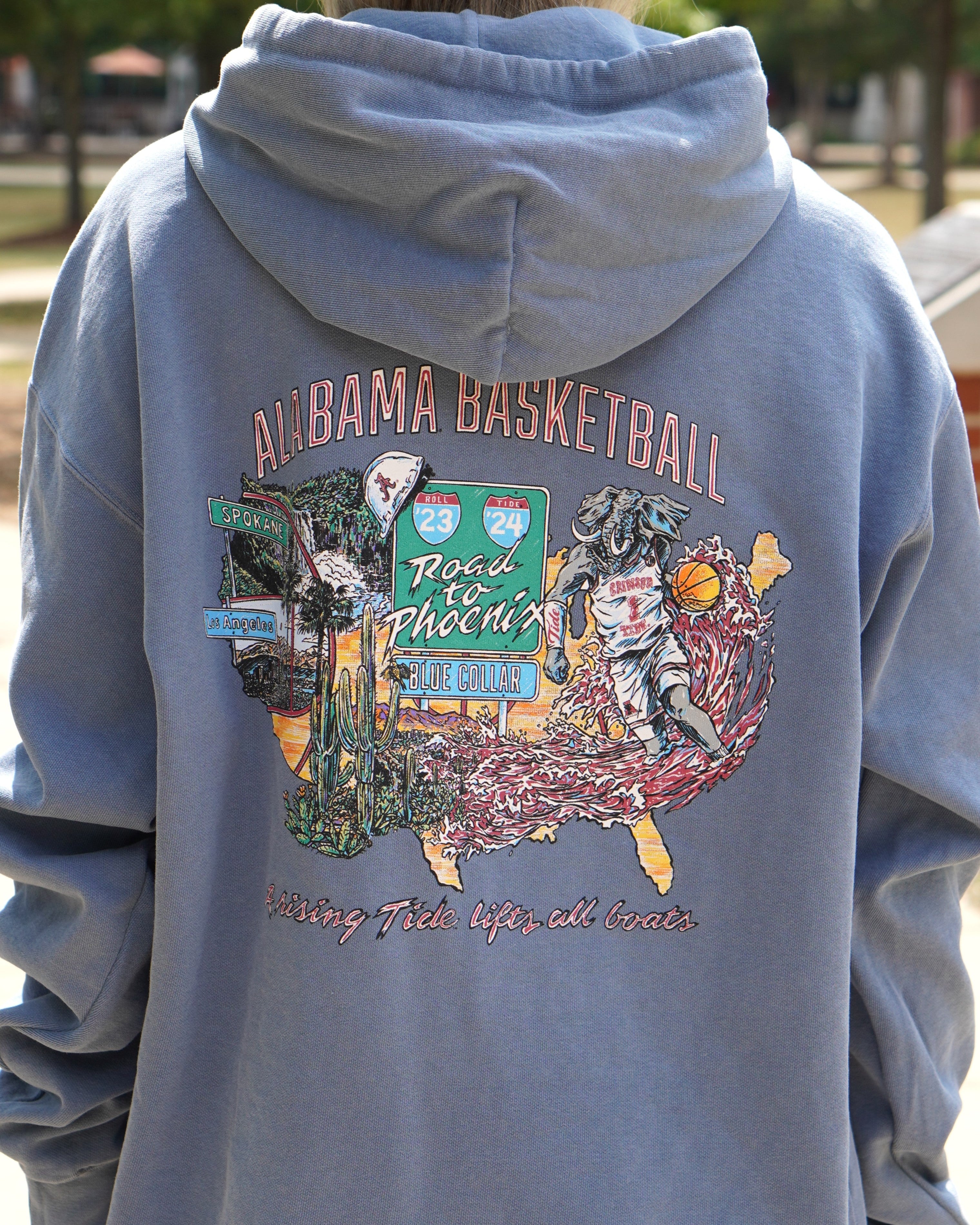 Shop University of Alabama Basketball Apparel! Gear up for Alabama Men's Basketball season with officially licensed Tide Hoops t-shirts, sweatshirts and hats. You'll find premium quality T-shirts featuring iconic scenes from Coleman Coliseum and Crimson Tide Men's Basketball history. Don't miss out on hats and polos featuring the Basketball Big Al logo inspired by vintage Tide Hoops merchandise from basketball seasons past.
