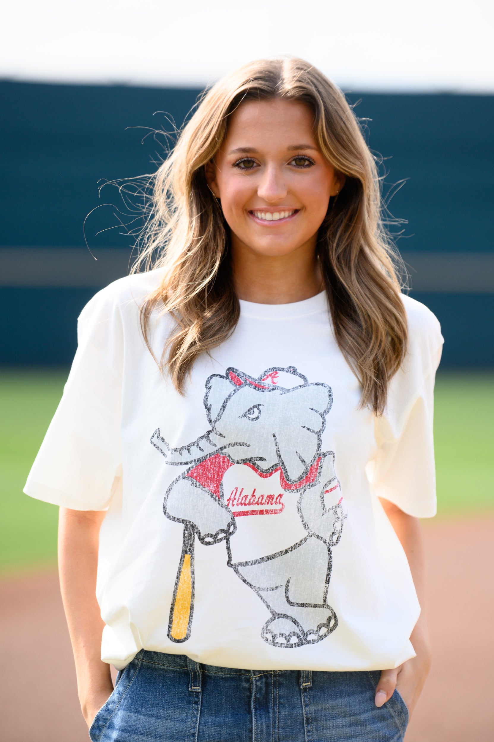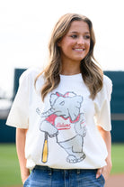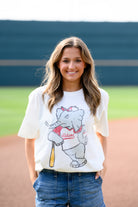 This Big Al Vintage Baseball t-shirt features your favorite mascot ready to knock one out of the park! This is the perfect Alabama vintage shirt for baseball fans. Perfect for sunny days in Sewell-Thomas Stadium and cheering on the Crimson Tide baseball team.