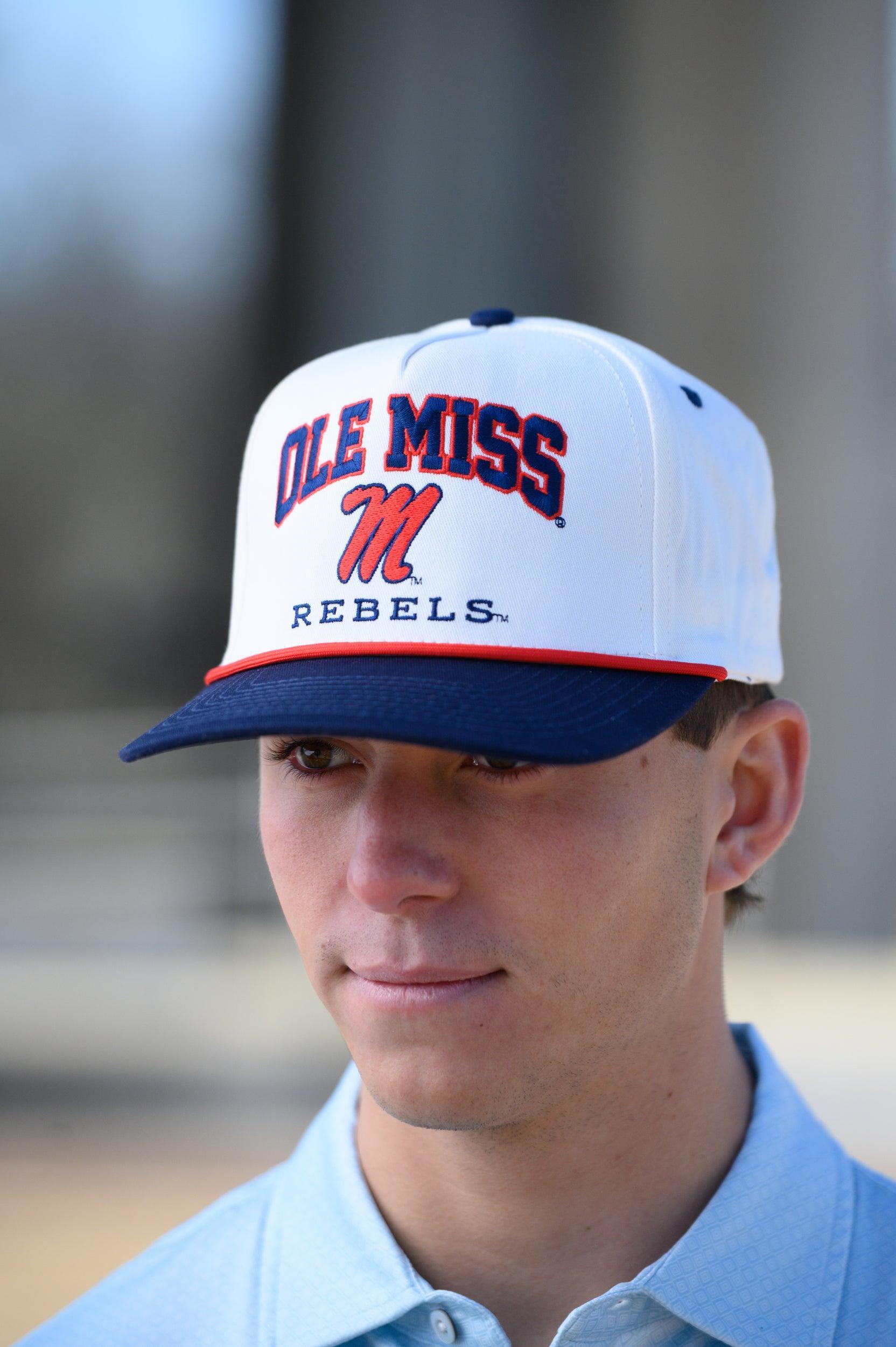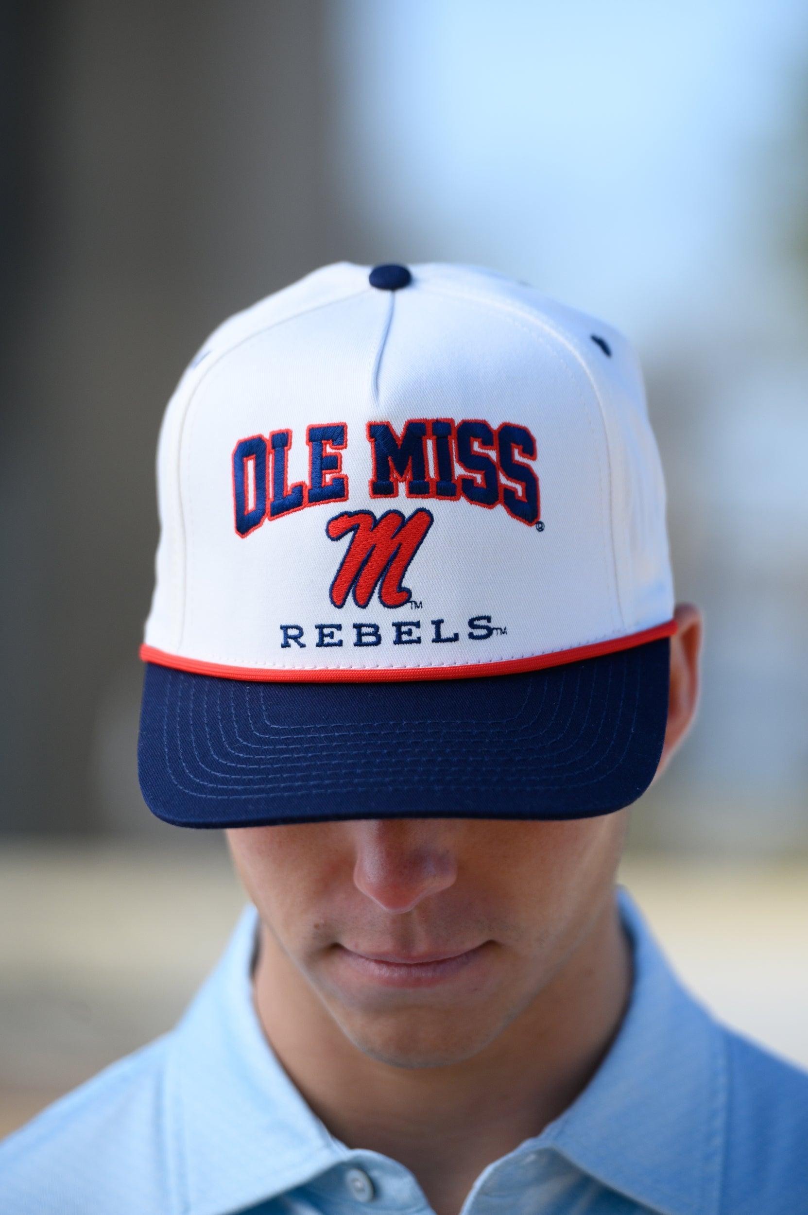 You don't have to raid your granddad's closet for the perfect vintage Ole Miss hat! JNJ has you covered. We've captured the timeless style of a retro cap and brought it back with a bold, modern twist. The Ole Miss Script M Two Tone Hat features that iconic old-school flair, complete with the classic Script M logo front and center. Whether you're tailgating, heading to class, or just showing off your Rebs pride, this Ole Miss hat is the go-to accessory. Designed for comfort and built to last, it's available exclusively at JNJ and guaranteed to turn heads wherever you wear it.