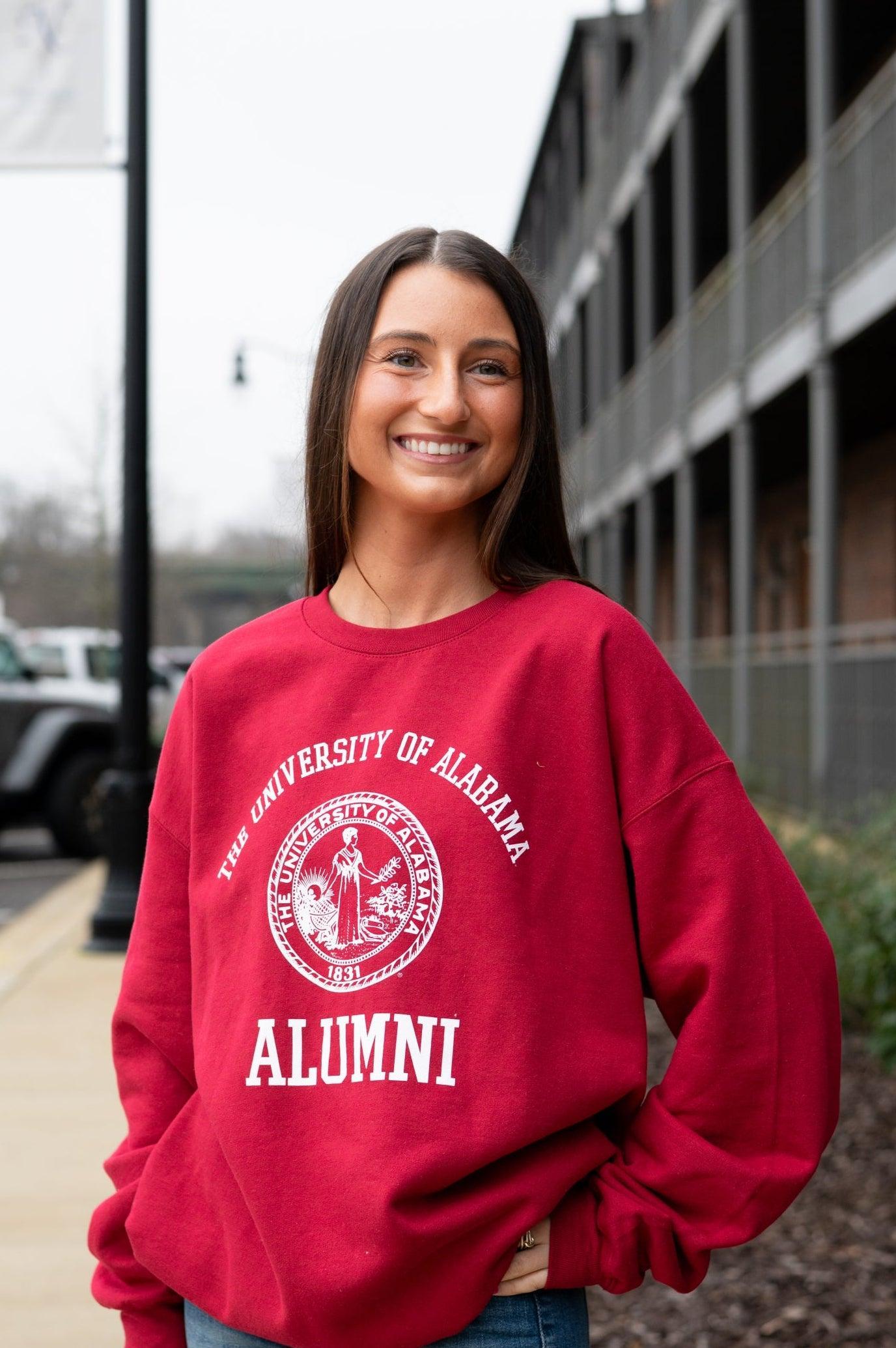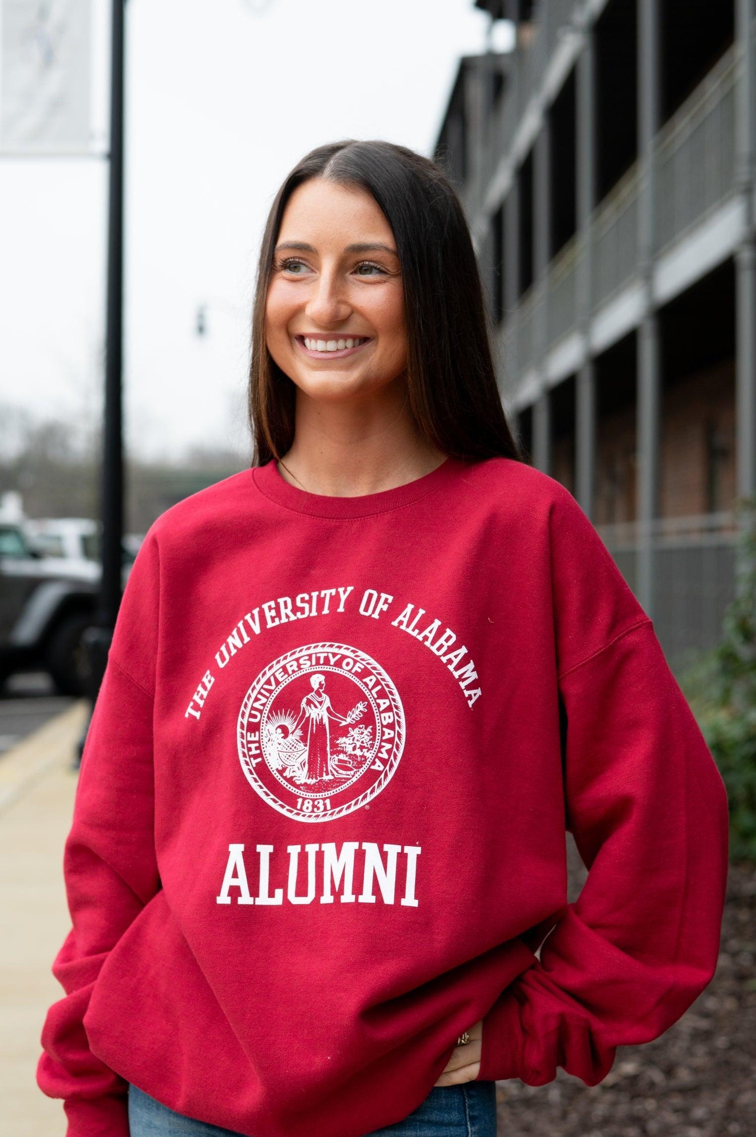 This classic University of Alabama Alumni sweatshirt makes the perfect gift for Alabama graduates. It is a quality fleece crewneck sweatshirt with a soft feel and a unisex fit. The recognizable University of Alabama seal is front and center of this traditional design.
